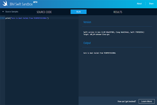 رابط الموقع : IBM Swift Sandbox
