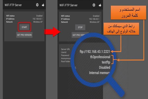 حسنا كل ما ستحتاج هو تطبيق يدعم خدمة "FTP" ملاحظة هناك العديد من التطبيقات متاحة في متجر Goole play , و متجر App store تدعم خدمة "FTP" فقط قم بكتابة في خانة البحث الخاصة بالمتجر FTP وسيظهر العديد من التطبيقات, فهي جميعها تعمل على نفس المضمون و بنفس الطريقة. هنا في هده المقالة سأستعمل تطبيق "wifi FTP Server"